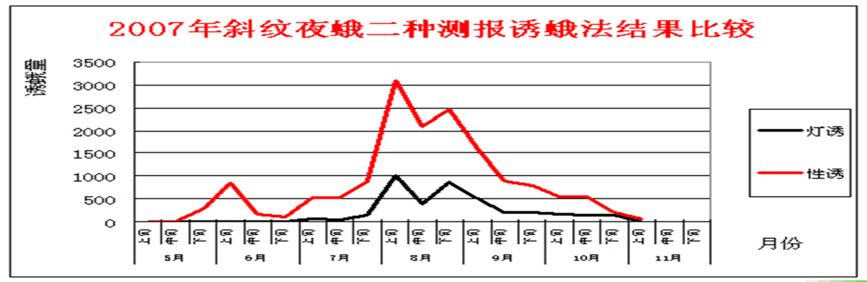 2.解决弱光性害虫测报的难题。生产上有一些害虫如稻纵卷叶螟、斜纹夜蛾棉铃虫、豆野螟等为趋光性弱,常规灯诱测报准确性不高,性剂测报能弥补灯诱的不足。
