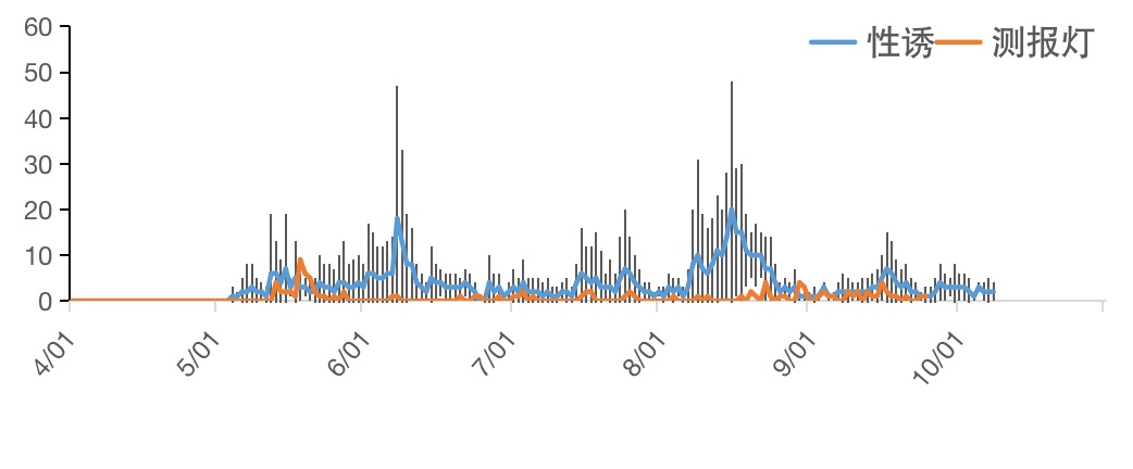 3.灵敏度高,动态曲线峰形明显、清晰,特别是对越冬代的监测更为明显。且性诱到的均为性成熟的昆虫,能实时反映自然状态下的昆虫生理状态
